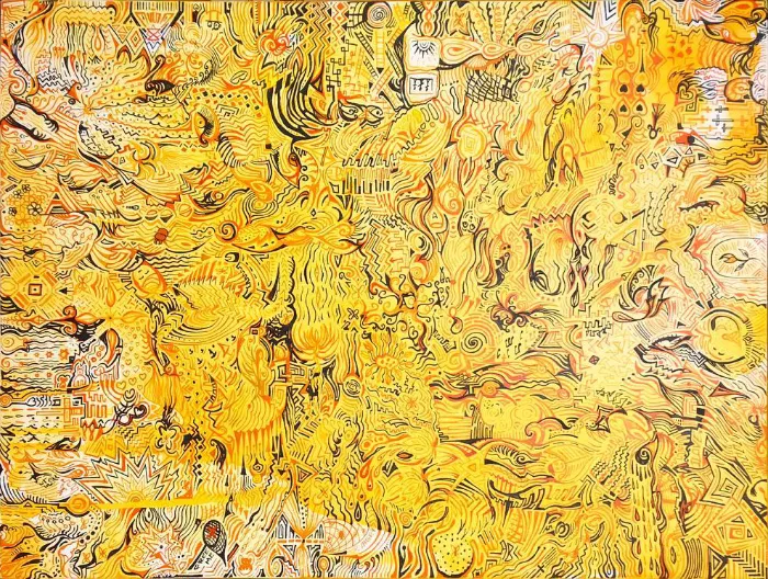 Synapses 09 is part of the Synapses series, inspired by the collective unconscious: the invisible web of thoughts, memories, and symbols that connect us. Entirely hand-drawn with a dip pen, the work reflects how ideas and symbols emerge both as fragments and as patterns, weaving clarity and chaos together. Rather than focusing on a single personal narrative, it speaks to shared crossings, where flows of connection and recurring forms invite viewers to recognize fragments of themselves within the composition.